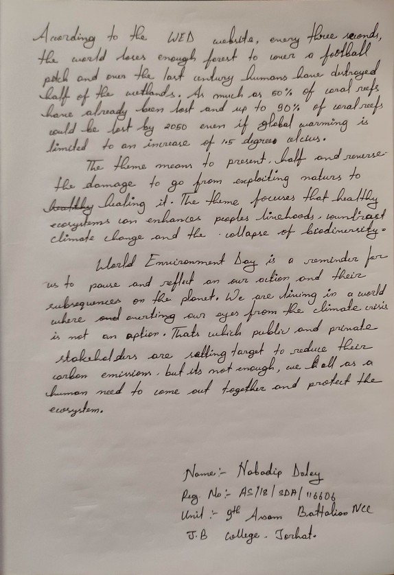 Chihnani Garg Bhattacharjee, AS19SWA 112548, 8th Assam BN NCC Unit, Kaliabor college.