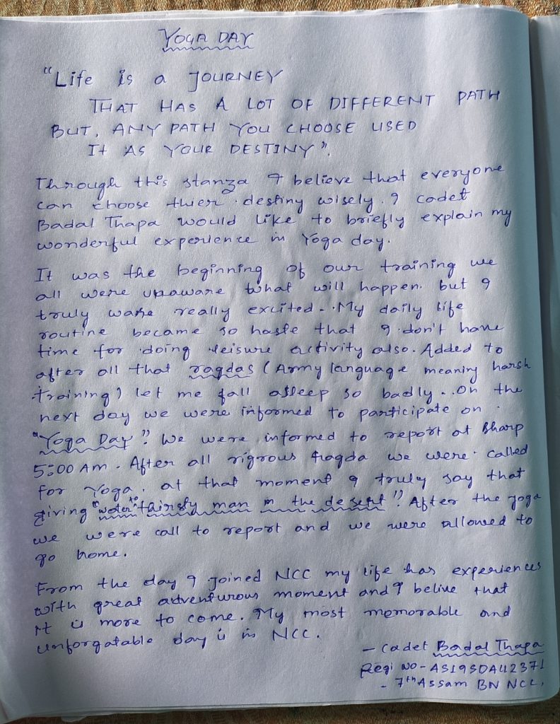 Myself pankaj narah from majuli ,assam . I was cadet since 2017 ,CATC ,TSC Camp I was attended . Jai Hind