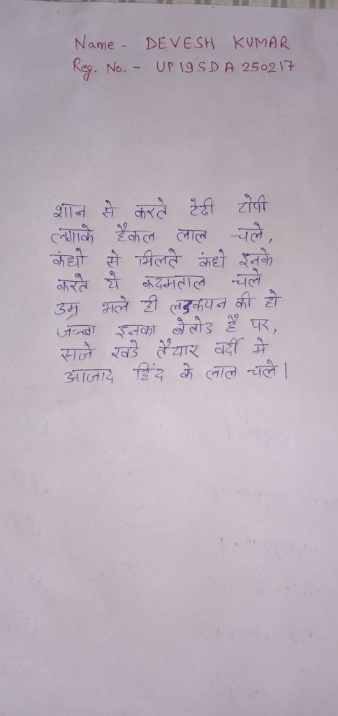 I am UO Haard Patel from 2ctc ncc unit, vvnagar gp, Guj dte successfully completed the task of singing Rastragaan on the 75th Independence day (Azadi ka Amrit Mahotsav).