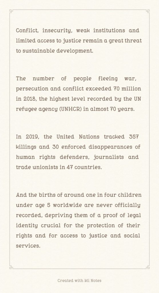 Conflict, insecurity, weak institutions and limited access to justice remain a great threat to sustainable development. CDT Muskan Behera from 5(O) BN NCC SAMBALPUR