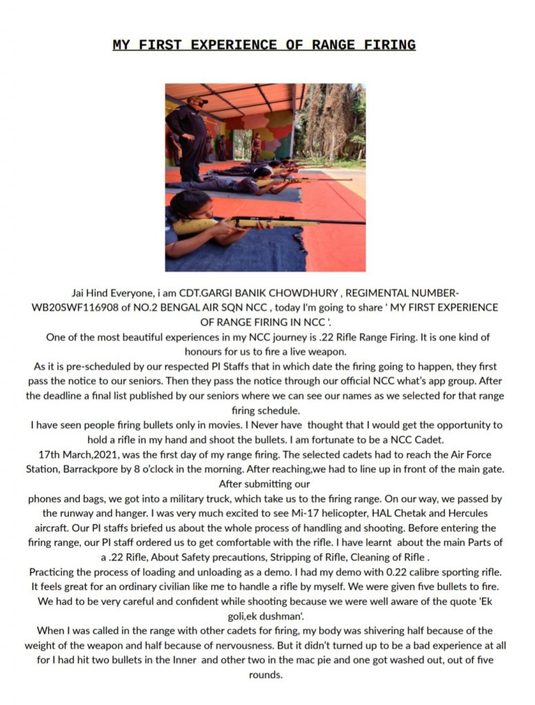 CDT. Gargi Banik Chowdhury Regimental Number- WB20SWF116908
