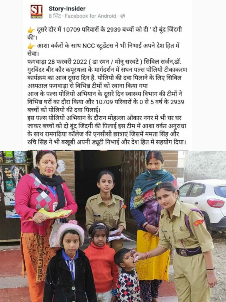 Jai hind everyone 1st year cdts, of 8 PB BN NCC ,Phagawara frkm Ramgarhia college, gave duty of Polio drops. Jai hind