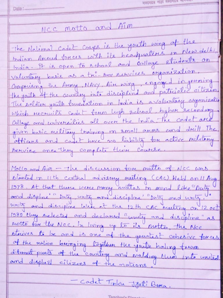 I am cadet Tinku Jyoti Bora Unit 9 Assam bn NCC jorhat regimental number AS20SDA117214