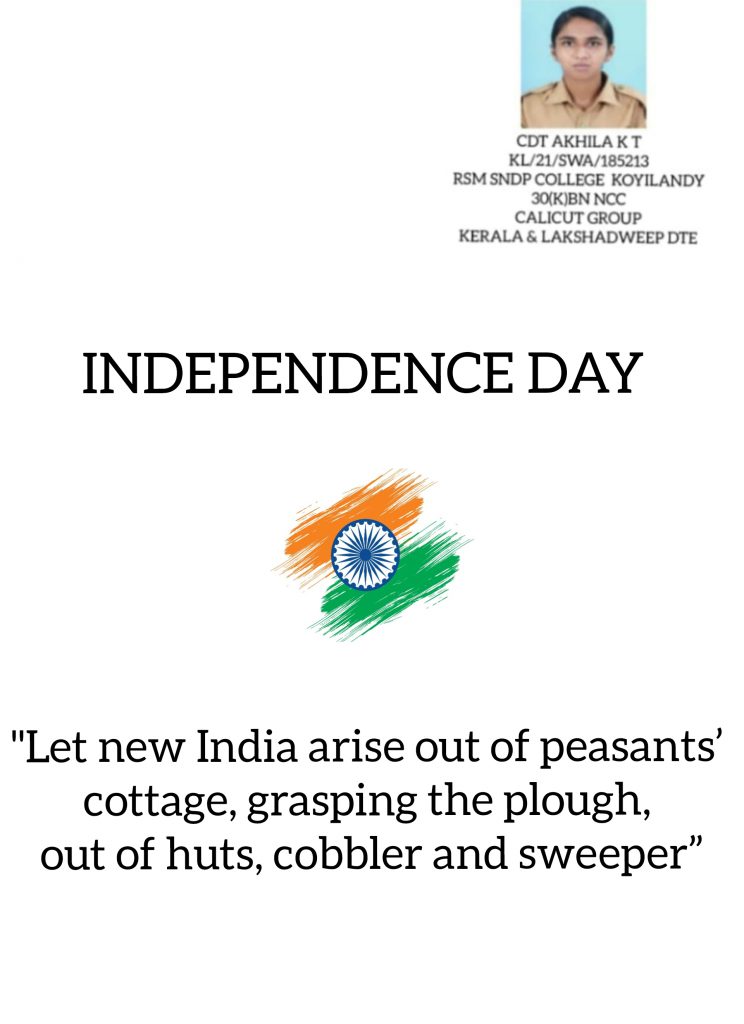 Cadet Akhila k KL/21KL/21/SWA/185213 RSM SNDP COLLEGE KOYILANDY 30(K)BN NCC Calicut group Kerala & LAKSHADWEEP DTE