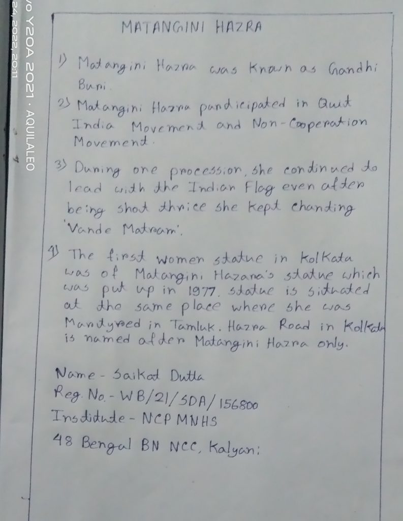 Cadet-Bishnupriya Mohanta Regiment no:-OD21SWA870401