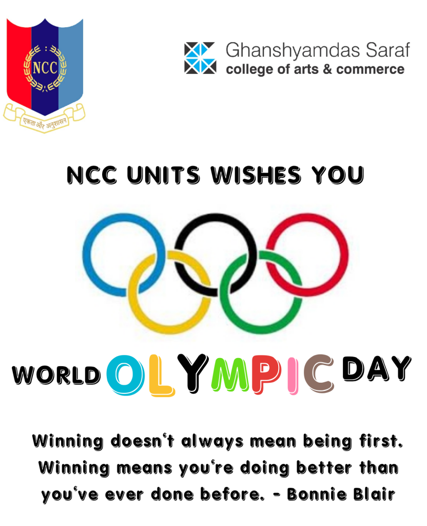 Jai Hind, Jai Bharat, Myself Cdt.Sunita.K.Gupta, International Olympic Day is celebrated every year on 23 June.The first Olympic Day was celebrated on 23 June 1948 to celebrate the birth of the modern Olympic Games at the Sorbonne in Paris.