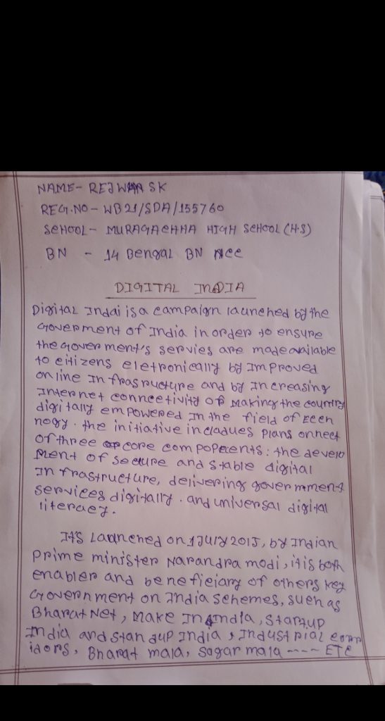 Cadet Satya Purusottam Jena ITER Bhubaneswar Regimental Number: OD21SDA141269 4 'O' CTC