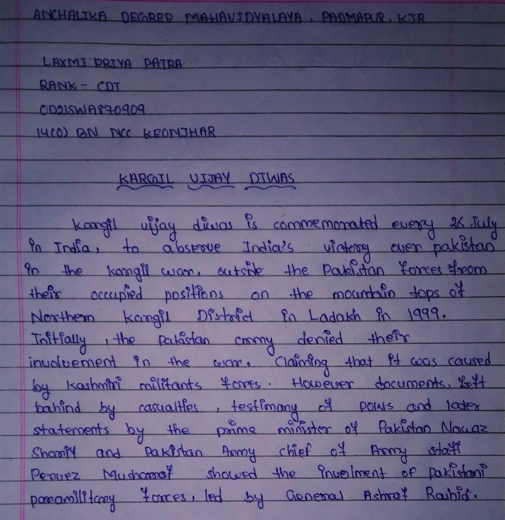 Kargil Vijay diwas CDT meenakhee Dehury 14 ( O ) bn ncc Keonjhar