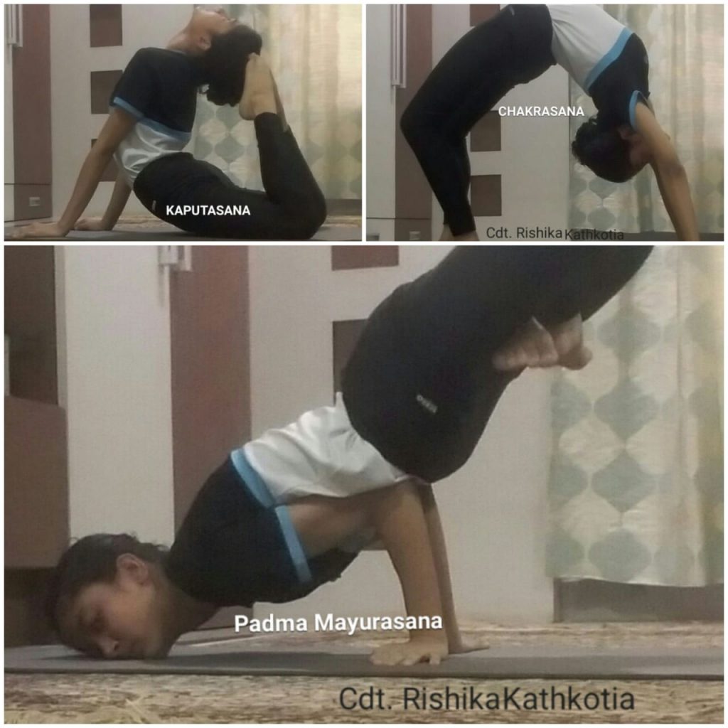 Cadet Riya of Mahavir Public School doing Yoga along with her family and friends.