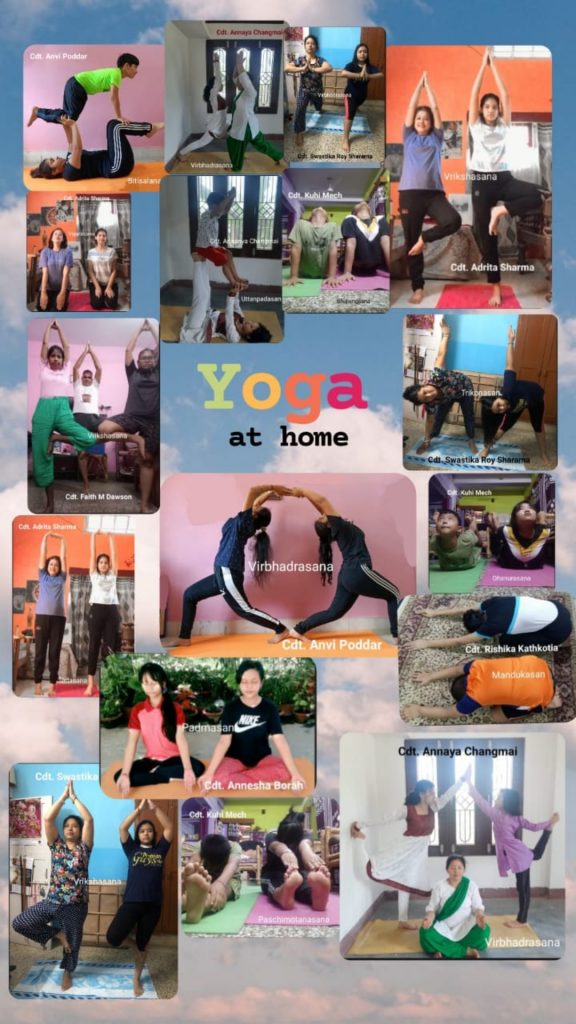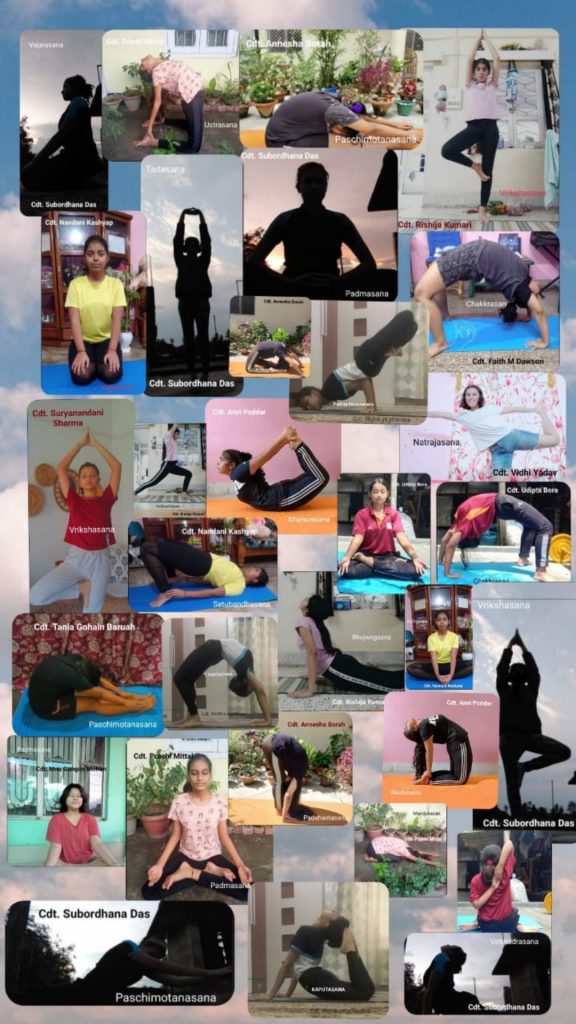 Cadets from Assam Girls (I) Co. Celebrating yoga day with our family.