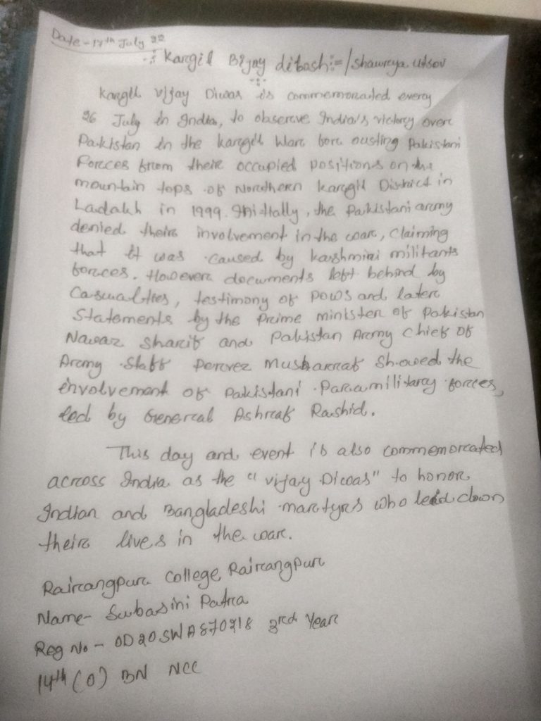 CADET SUSANTA KUMAR DHAR REG No.: OD21SDA141284 UNIT: 4 'O' CTC NCC GROUP: CUTTACK Institute: ITER SOA