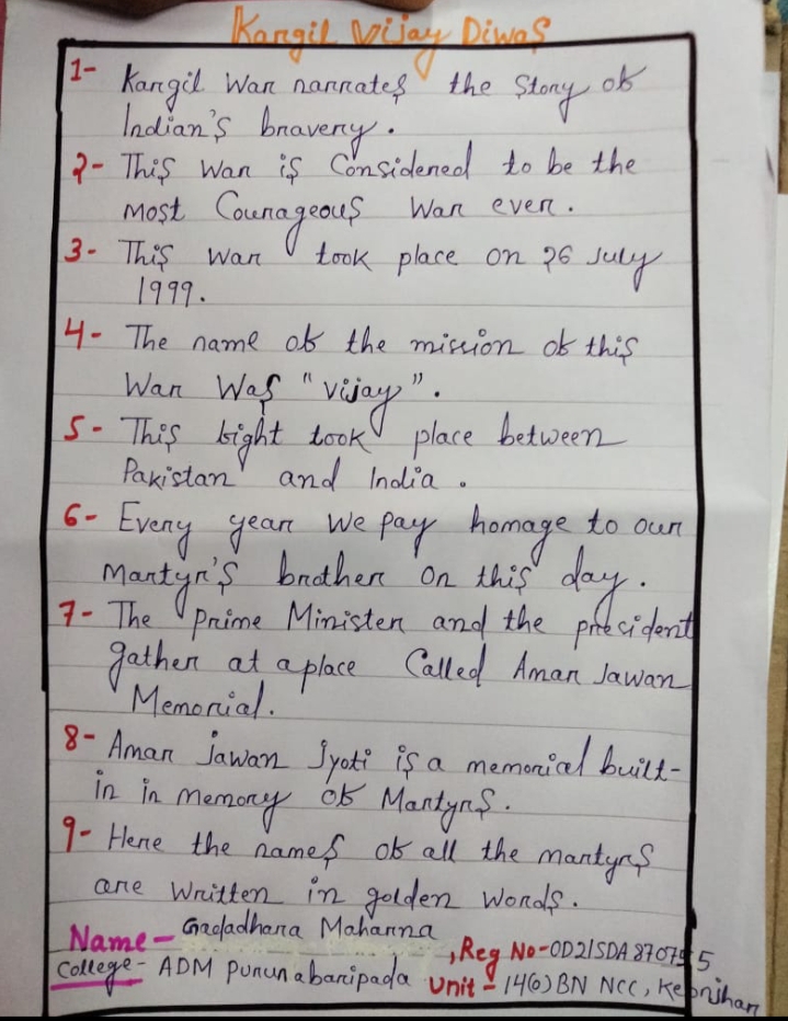 Name - CDT RAHUL KESHRI PH No- 6296667856 Reg No - WB20SDA193814 Email id- rk9775451331@gmail.com Name of college- Banwari lal Bhalotia Name of Battalion - 10 Bengal Battalion Name of group - Burdwan Name of DTE - WB & Sikkim