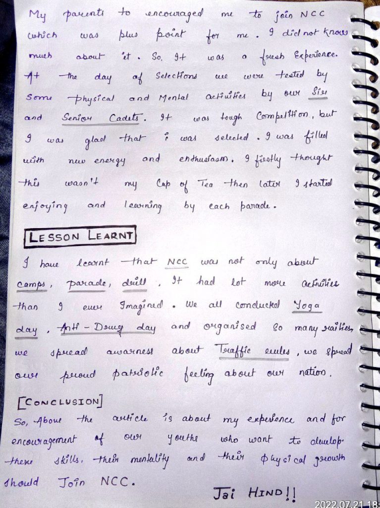 Name -cdt puspanjali Nayak Regd no -0D21SWA870692 Clg Name -patitapaban Degree College ,Sainkul Unit -keonjhar Group headquarter-sambalpur