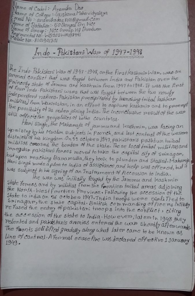 Name :- Anamika Das Reg No :- WB20SWA198441 College name :- Guskara mahavidyalay 50 Bengal Bn NCC WB&S Director