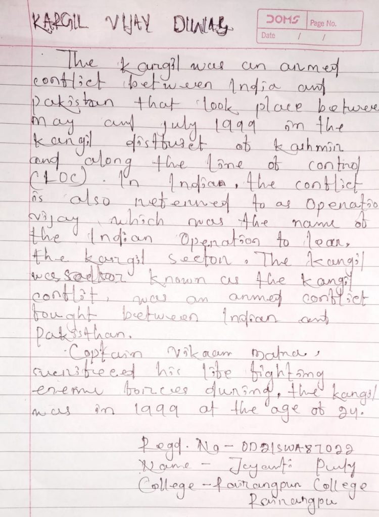 Cadet- Papin Behera, Brahmanajharilo Mahavidyalaya, Regimental no- OD20SDA101700, 1 ODISHA BATTALION, Cuttack