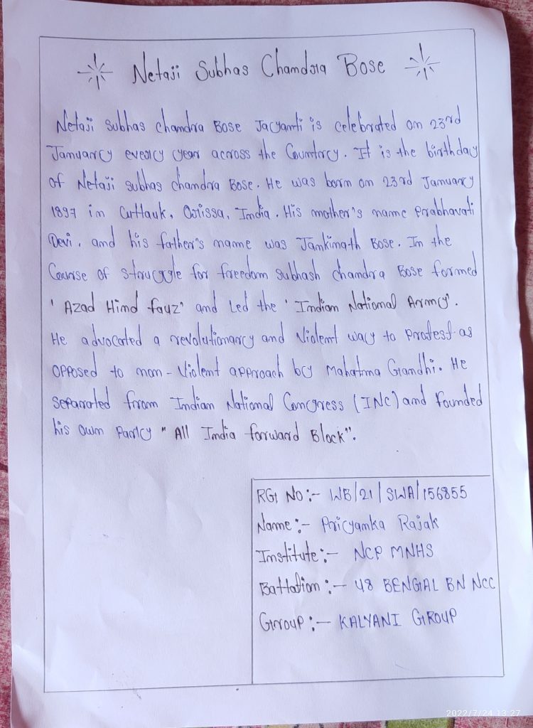 WB20SDA153629, CDT PURNIMA BARUI, SC COLLEGE UNDER 6 BENGAL BN NCC