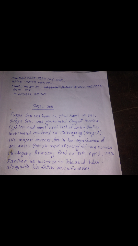 Name of the Cadet: Harmanjot Kaur Regimental number: WB20JWA 183743 Name of the school: Burnpur Riverside School, Burnpur Mobile no.: 9064248732 NAME OF THE BATTALION: 10 BENGAL BN NCC NAME OF THE GROUP: NCC GROUP HQ BURDWAN