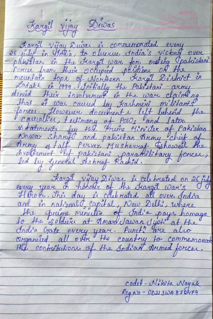 Jai hind CDT-Geetanjali Mohanta Reg no.-OD21SWA870075 14 (O) BN NCC, KJR