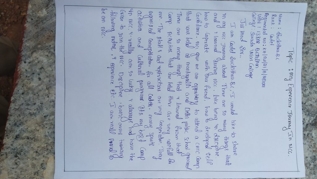 Shashank C Sarada vilas college 13 Karnataka bettalion NCC