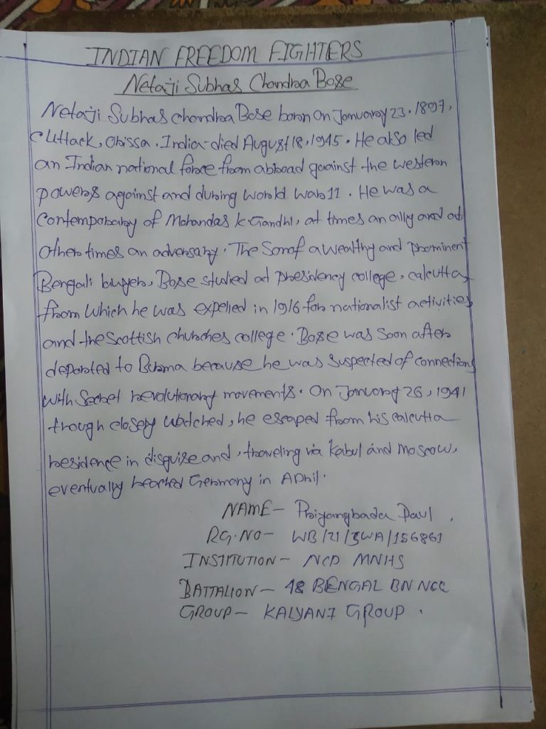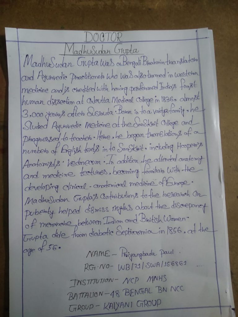 Name- Suman guin, reg no- WB20SDA197988, battalion name- 50 BN NCC, Group- Bardhaman, Director- West Bengal and Sikkim..