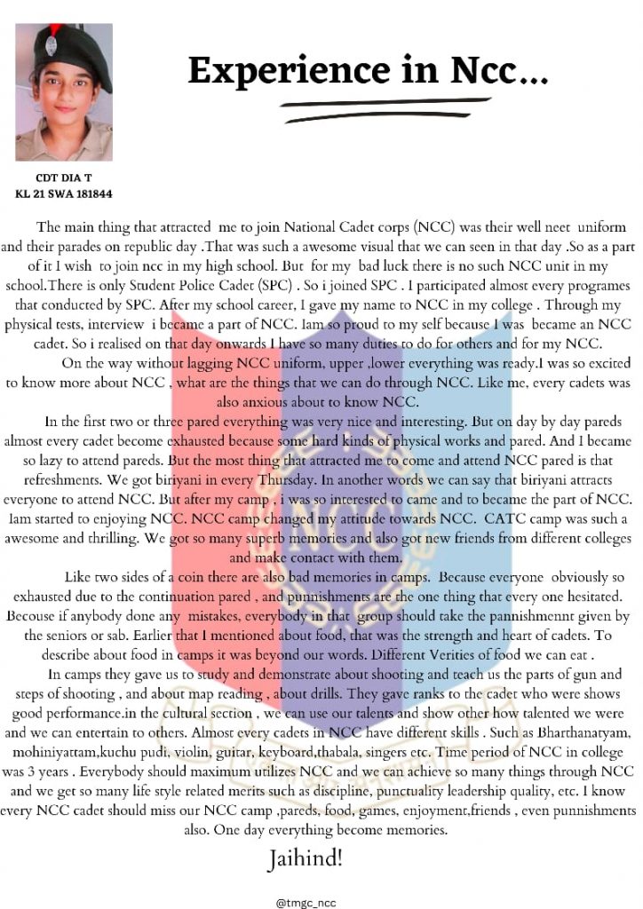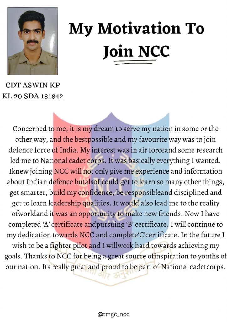 This article was self written and conveys my motivation to join the National Cadet Corps and find a way to serve the nation whole heartedly.