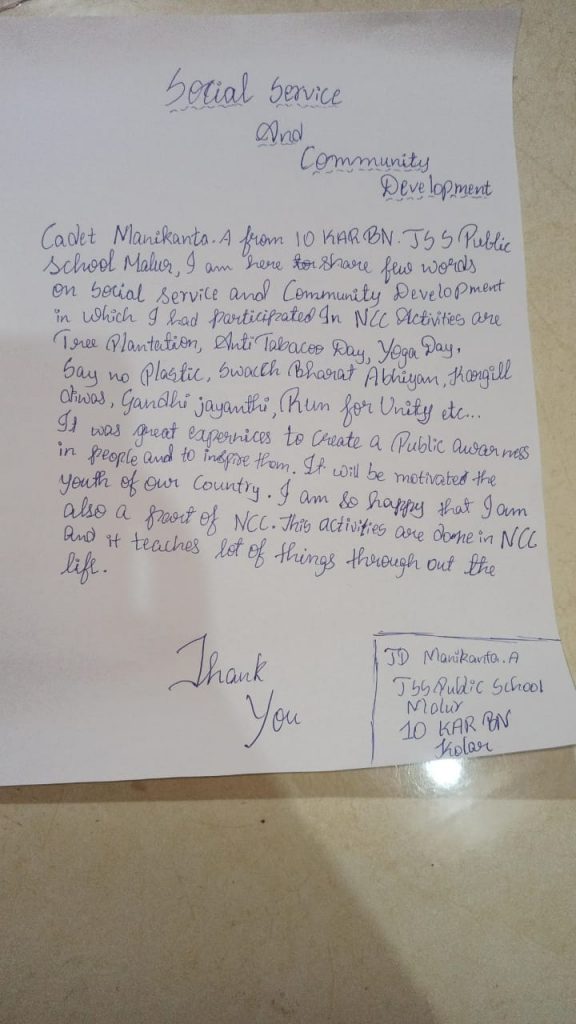 Written by Manikanta A Junior Division 10 KAR BN KOLAR MALUR J S S Public School