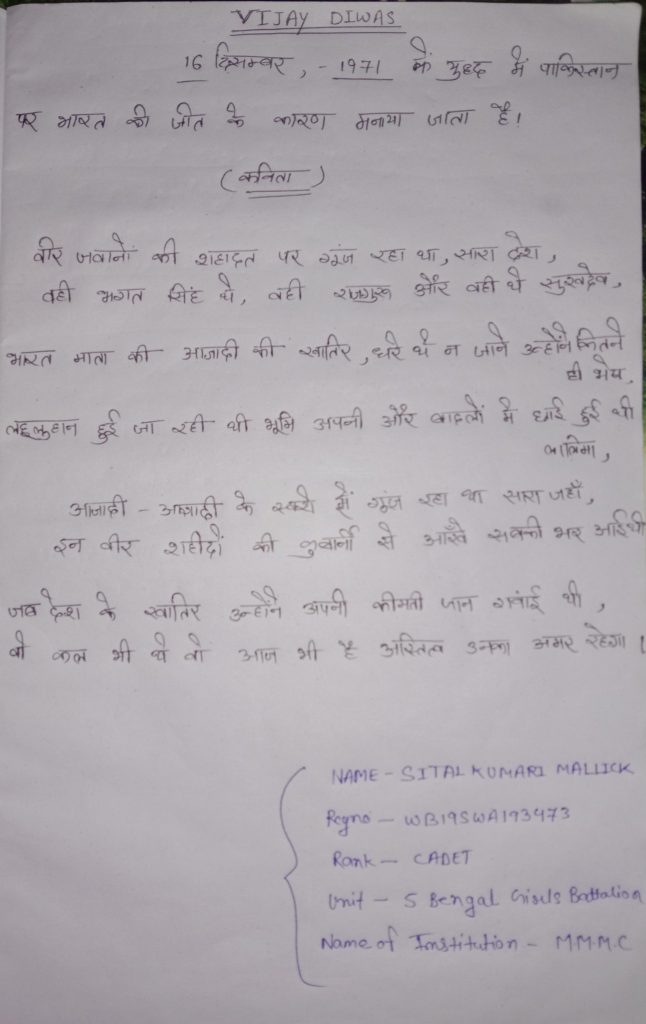 My name is sital kumari mallick and I am a NCC cadet. And I am a college student