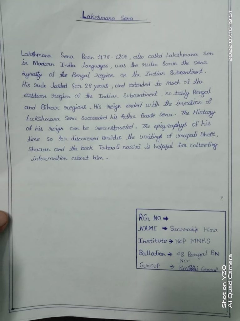 Name:Subhadeep das RG no:WB/21/SDA/ 156799 Institute:NCP MNHS Battalion:48 Bengal BN NCC Group:Kalyani