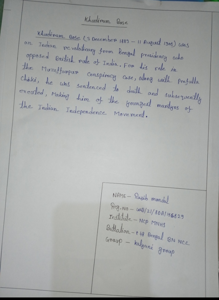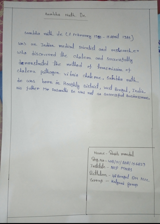Regt. No - WB21SDA194287, Name - Sayan Chakraborty, Rank - CADET