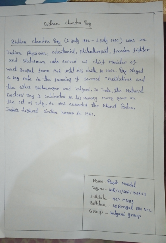 Reg.No-WB20SDA194287 , Rank- SGT, Name -Azad Mia, college name- Mankar college, Group name - bardwan, unit- 10 Bengal Asansol BN Ncc , DTE- west bengal and Sikkim