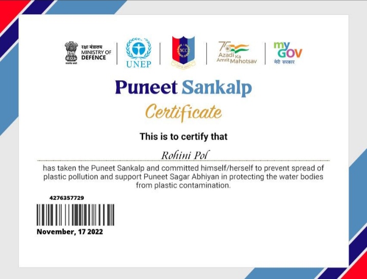 We take the puni sankalp and commited to prevent spread of plastic pollution and support punit sagar abhiyan in protecting the water bodies from plastic contamination.