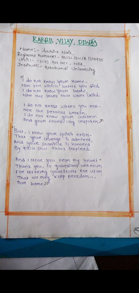 13(0)BN .NCC, NABARANGPUR NAME-ARCHITA NAIK INSTITUTION- KALAHANDI UNIVERSITY,BHAWANIPATNA