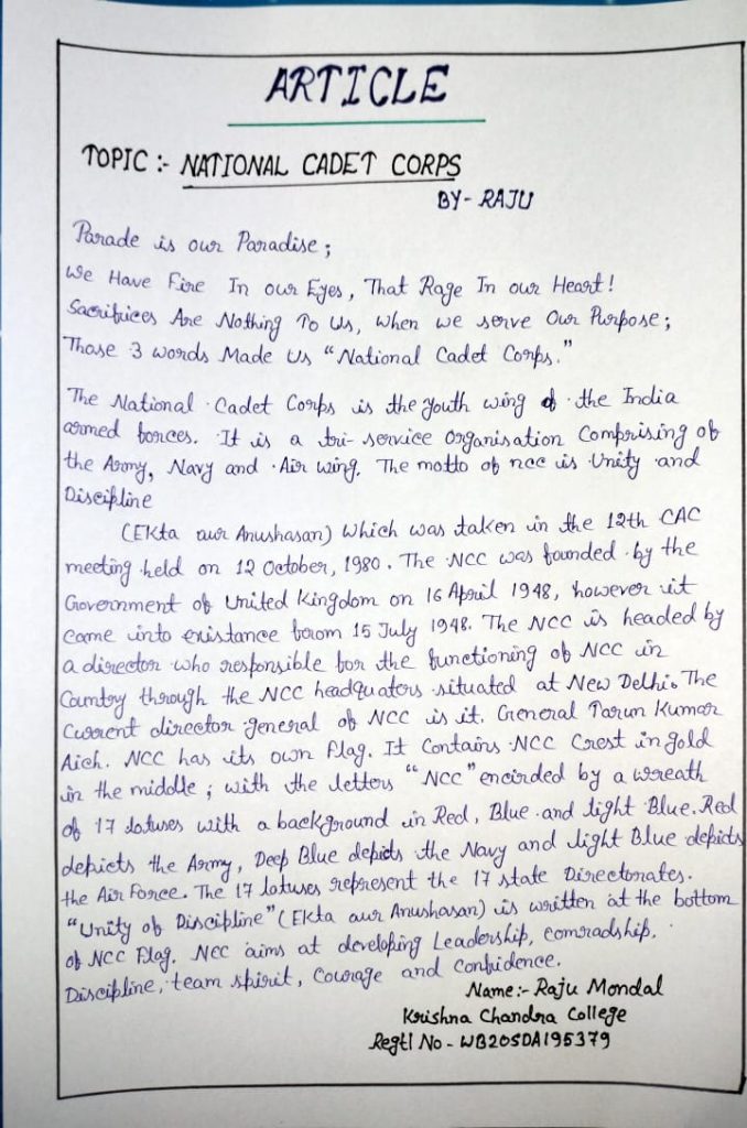 Regiment -WB20SWA193856 Name -Swati Kumari Turi Rank -Cadet College -Banwarilal Bhalotia college Battalion 10 Bengal BN NCC Group NCC Group HQ Burdwan Directorate -West Bengal & Sikkim