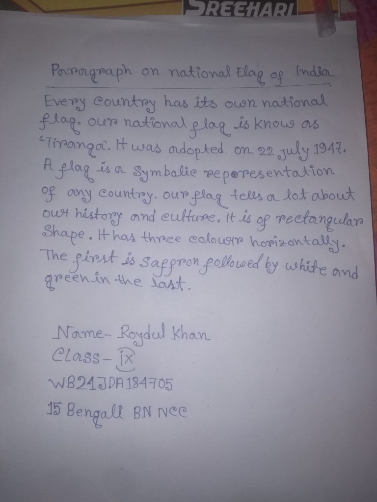 It is of rectangular shape it has three colous horizontally the first is saffrom followed by white and green in the last
