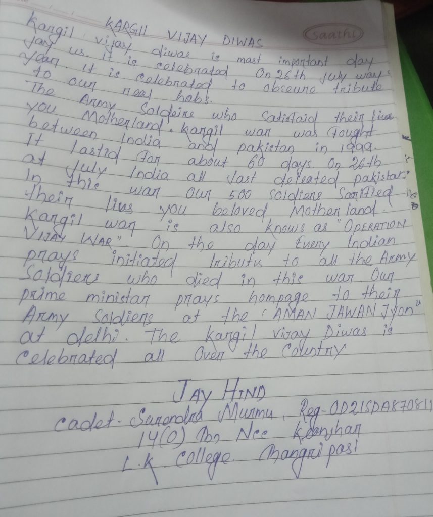 Cadet- Surendra Murmu Reg-OD21SDA870811 L.K.COLLEGE , BANGRIPOSI