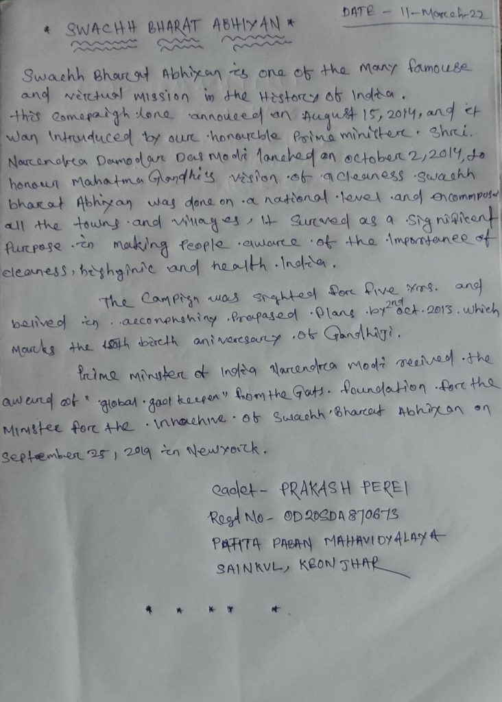 CDT -PRAKASH PEREI REGT NO-OD20SDA870673 College -Patita paban Mahavidyalaya sainkul keonjhar