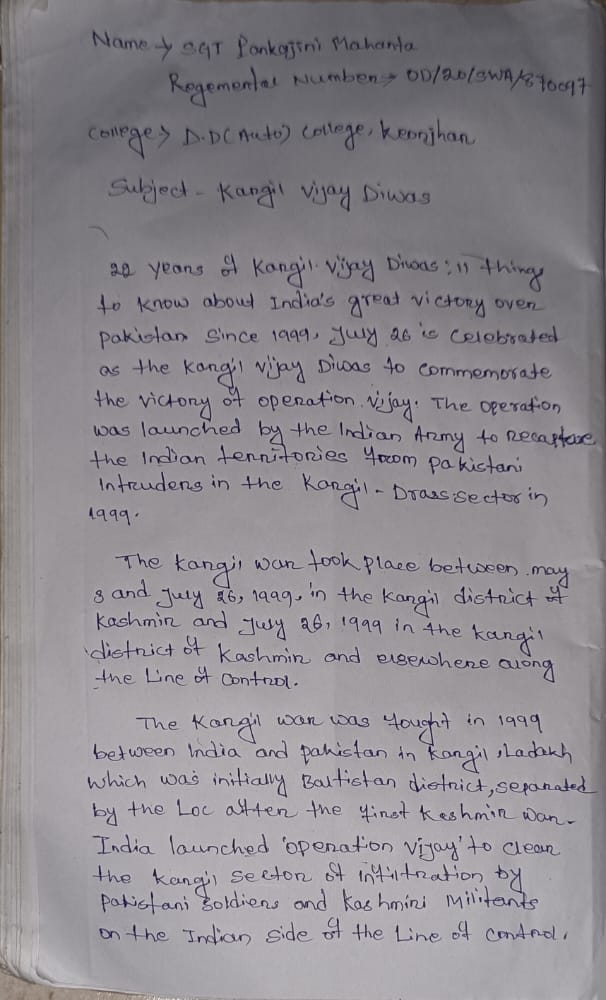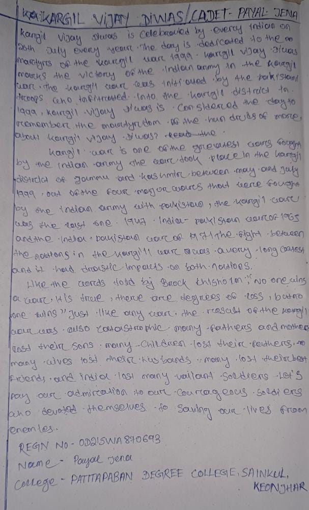 Kargil Vijay Diwas CDT meenakhee Dehury 14 ( o ) BN ncc keonjhar