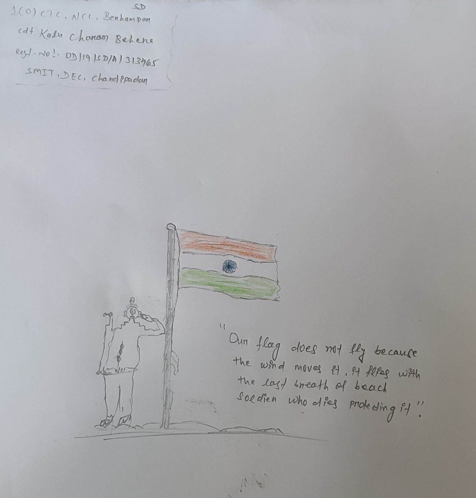 Cdt Kalu charan behera Regt.no OD/19/SD/A/313465 1(O)CTC,NCC,BERHAMPUR SMIT,DEC,CHANDIPADAR SD