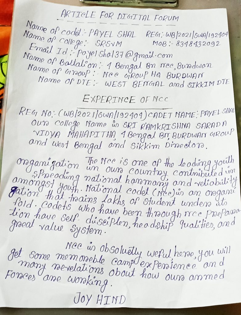 Article on Agnipath Scheme by WB20SDA228178 JUO Sahil pradhan from Surya Sen mahavidya ,16 Bengal BN NCC , Darjeeling and Sikkim Group , West Bengal and Sikkim Directorates.