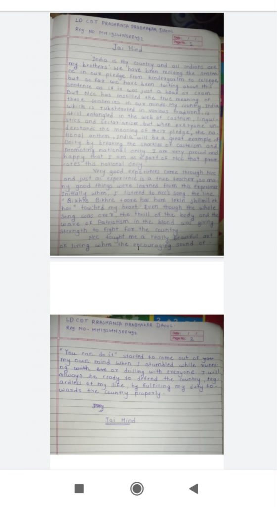 Jay Hind, I am LD cdt Prashansa daool share some of the ncc experiences