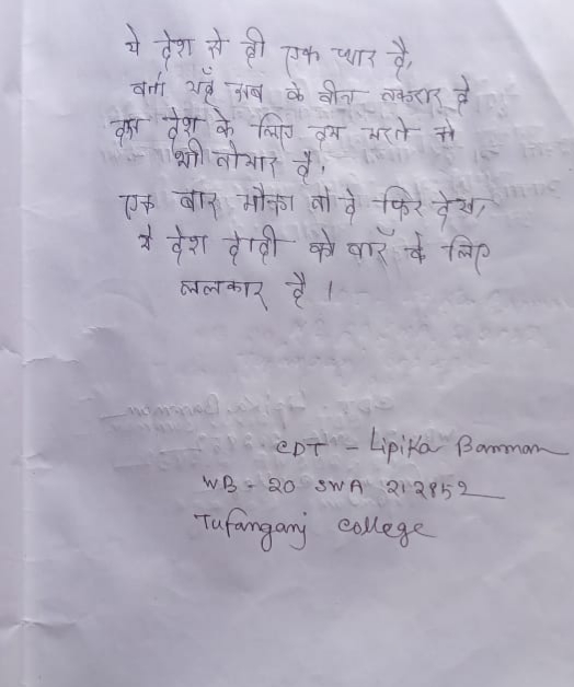 Cadet Lipika Barman WB 20 SWA 212852 Tufanganj Mahavidyalaya