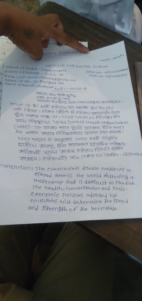 CDT:- SIBSANKAR DAS REG NO:-WB19SDA167862 46 BENGAL BN NCC