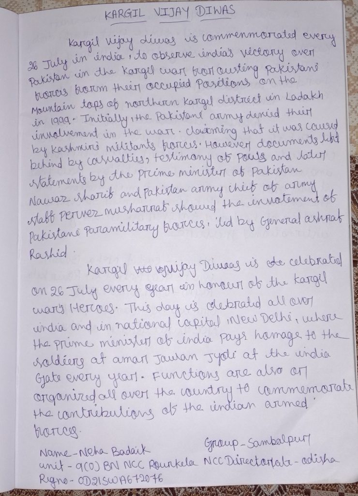 Written by Cadet Nandini Rai WB20SWA209365 4 BENGAL GIRL'S BN NCC Darjeeling Government College