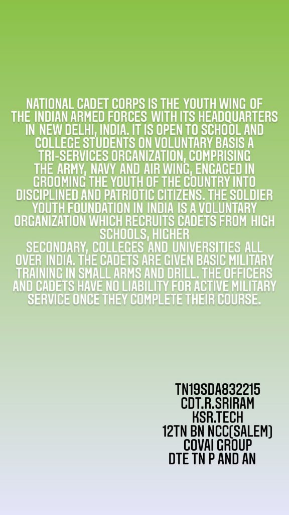 I'm cadet R Sriram I share my experience in ncc in above image