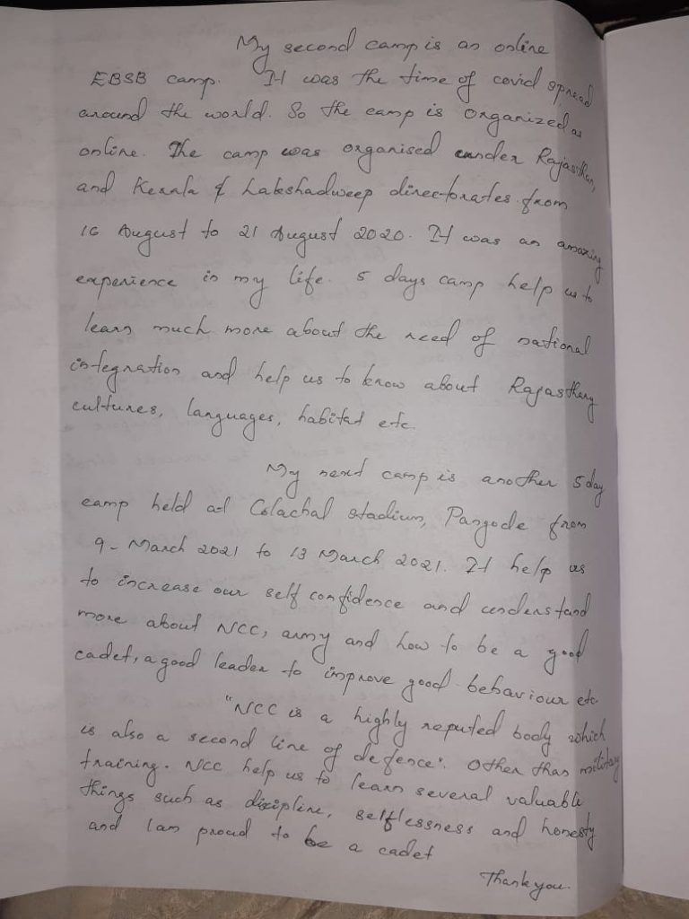 It was a wonderful experience for me in my life. The NCC tought me to lead a better life.