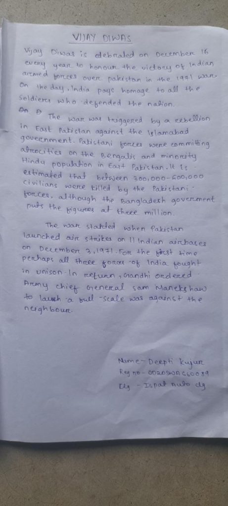 CADET - RANJITA NAYAK INSTITUTIONS NAME - ISPAT AUTONOMOUS COLLEGE UNIT - 9(O) BN NCC REGT . NO - OD21SWA660201