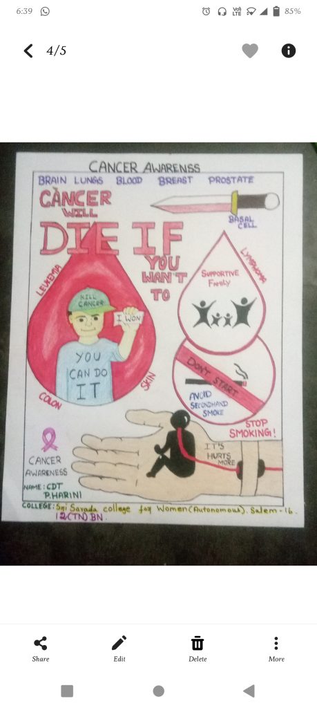 Rank&Name: CDT.P.Harinj , Reg no: TN20SWA833207 Clg name: Sri Sarada College For Women (Autonomous) , Salem – 16. 12(TN)BN NCC, KOVAI GROUP, TN,P& AN DTE . CANCER AWARENESS