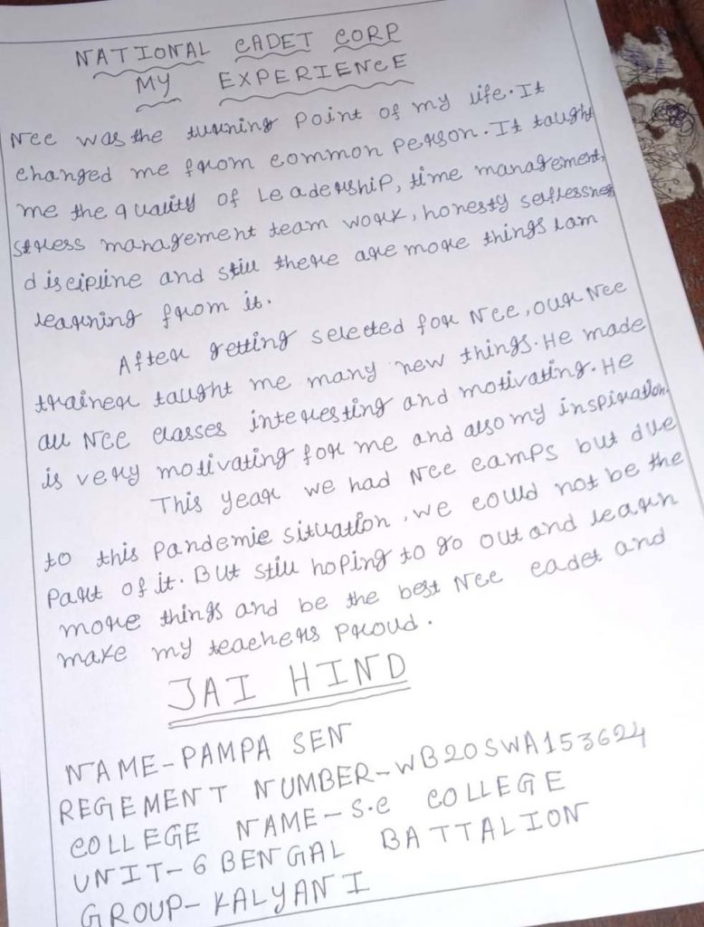 Regtl no:- WB20SDA157920 Name :- souvik sarkar RANK :- JUO College:- kalyani Mahavidyalaya Unit :- 49 BN NCC .