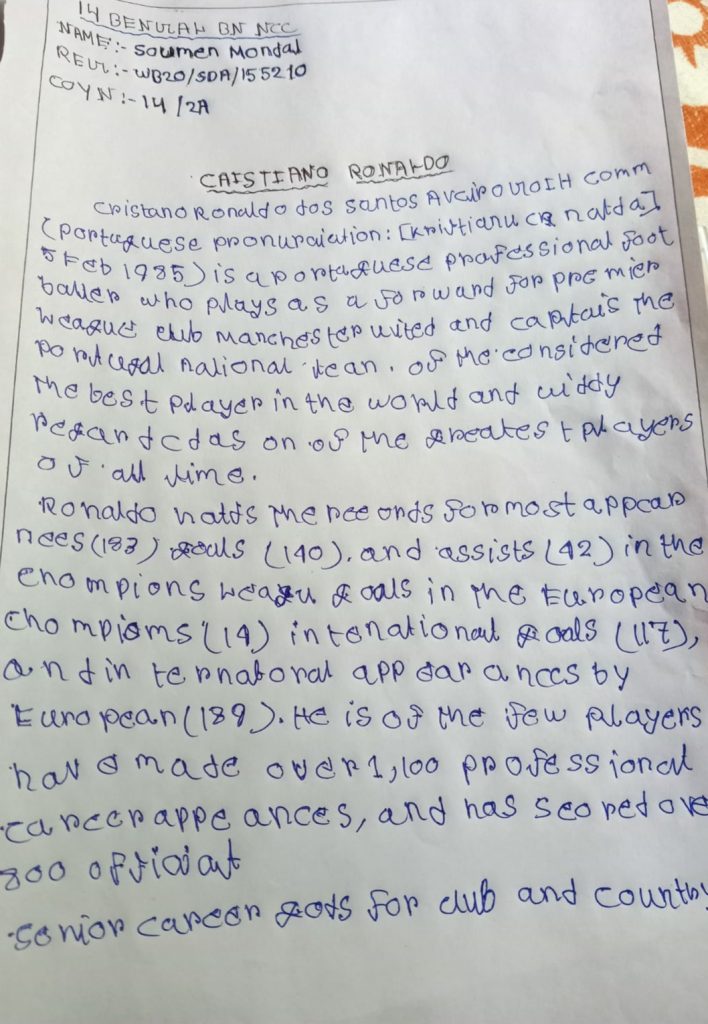 Regiment no - WB20SDA197974 RANK - JUO NAME - Raj kumar thander 50 Bengal Battalion BN NCC Unit- 50/4 West Bengal
