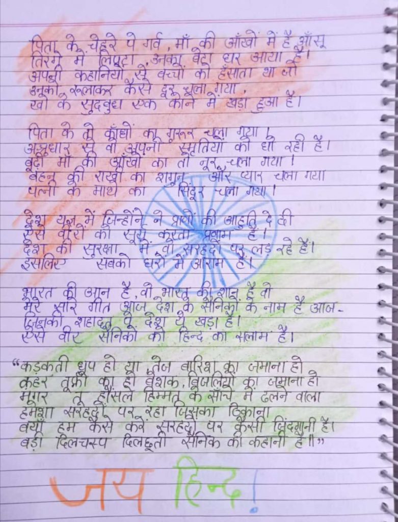 Myself flt.cdt. sukriti Verma,I had presented a poem on the occasion of kargil Vijay diwas which is solely dedicated to the brave soldiers of my country.